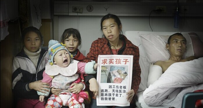 丈夫重伤住院 女子为救夫街头跪地卖女儿