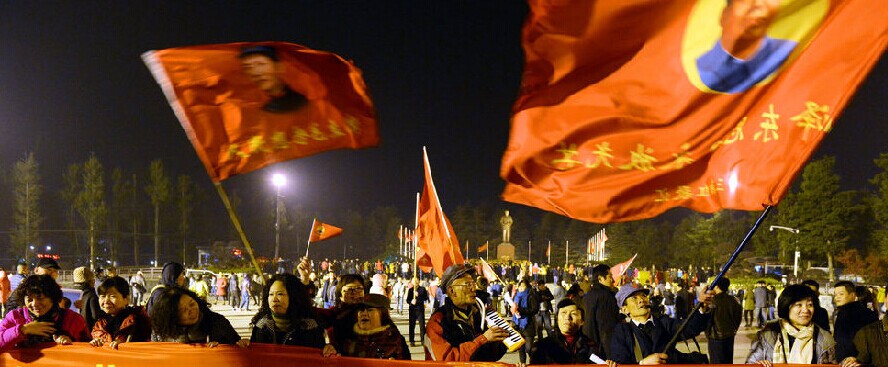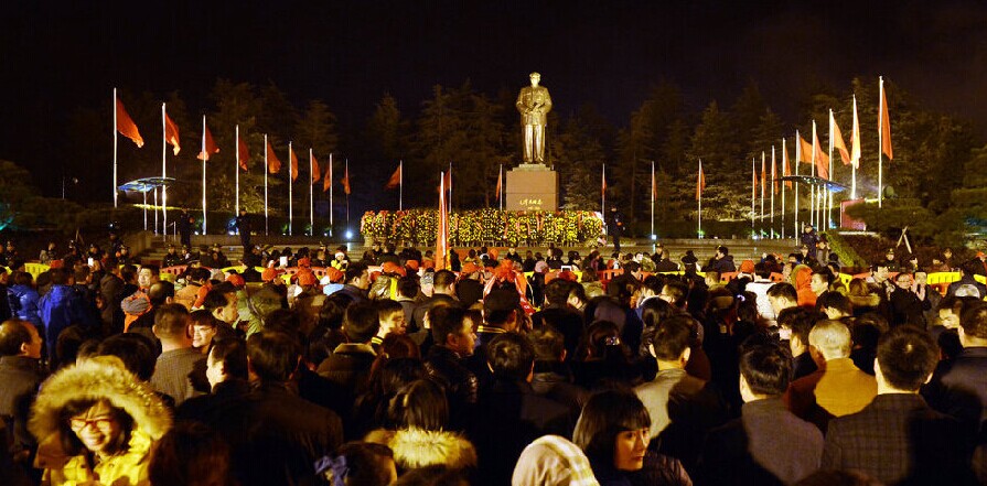 2014年12月26日零点,韶山毛泽东广场近10万各地群众欢欢喜喜,共同迎来毛泽东同志诞辰121周年纪念日。
