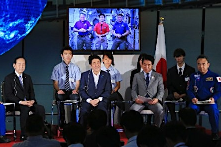 除安倍外,宇航员毛利卫(67岁)及古川聪(51岁)等人也参加了连线活动。国际空间站方面,挑战一年长期停留的美国宇航员斯科特?凯利也出席。