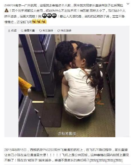 旅客父母带小孩在飞机后舱大便