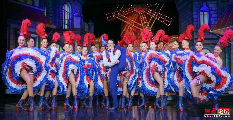 法国巴黎,红磨坊女郎高抬腿踢29次,刷新吉尼斯世界纪录【30秒内站成一排“劈叉跳”次数最多】称号。