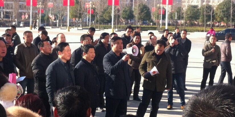 河南固始罢工教师来到县政府门口讨要说法