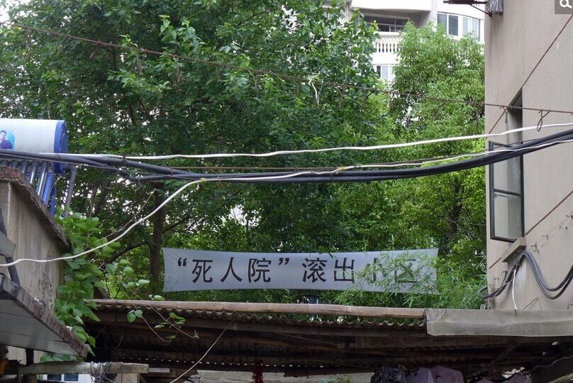 8月8日,上海杨浦区心仪雅苑小区随处可见“抗议在居民区中建养老院”等横幅。今年,上海一家公司准备将该小区的闲置楼房改建成公办民营性质的养老院,却遭到了小区业主的强烈反对,一些小区业主甚至挂出“‘死人院’滚出小区”的横幅。